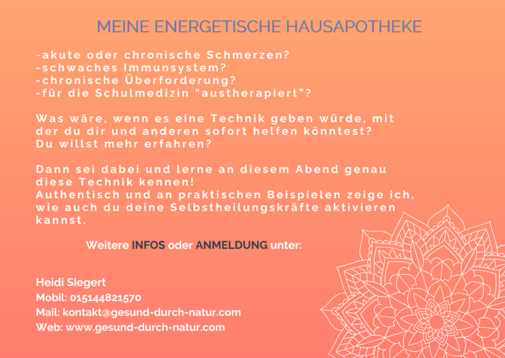 Was ist Energiearbeit? An diesem offenen Infoabend erhältst du einen ersten Einblick in die Welt der energetischen Heilmethoden – feinfühlig und achtsam.